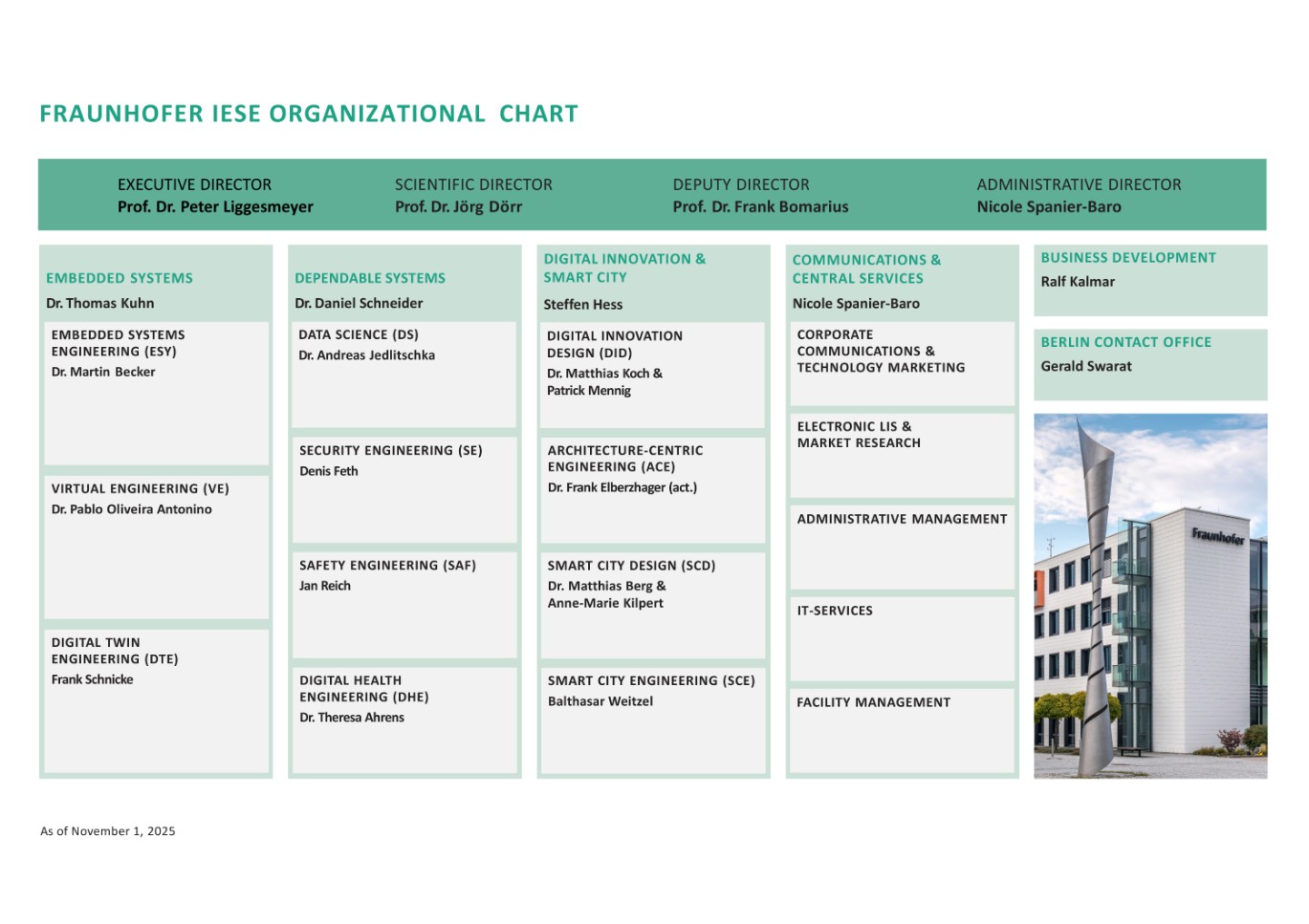 Das Fraunhofer-Institut für Experimentelles Software Engineering IESE führt drei Hauptabteilungen.
